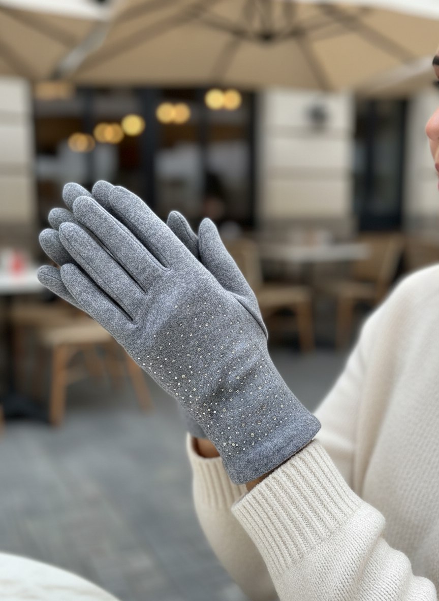 Перчатки кашемировые со стразами 72460523\10