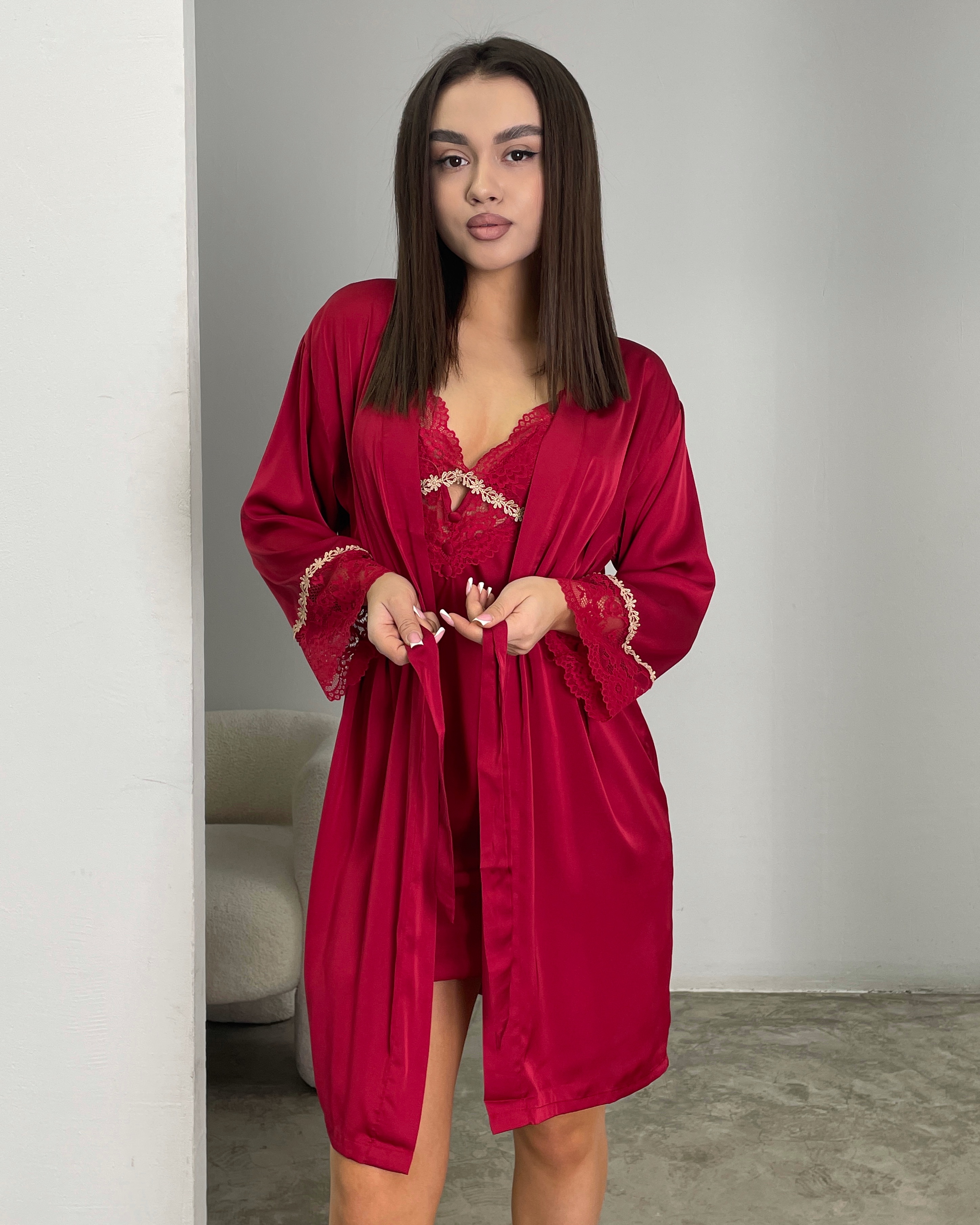 Ночная сорочка с пеньюаром (атлас) 72447997\1025