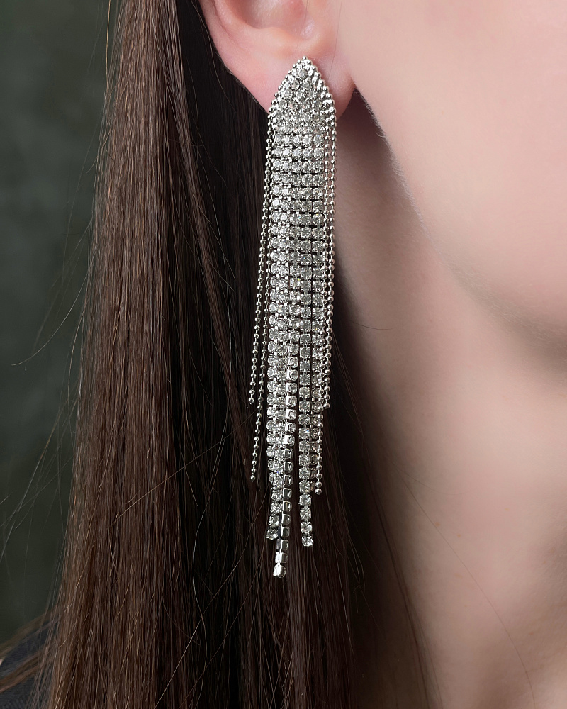 Серьги гвозди цепочками со стразами 72446911\448
