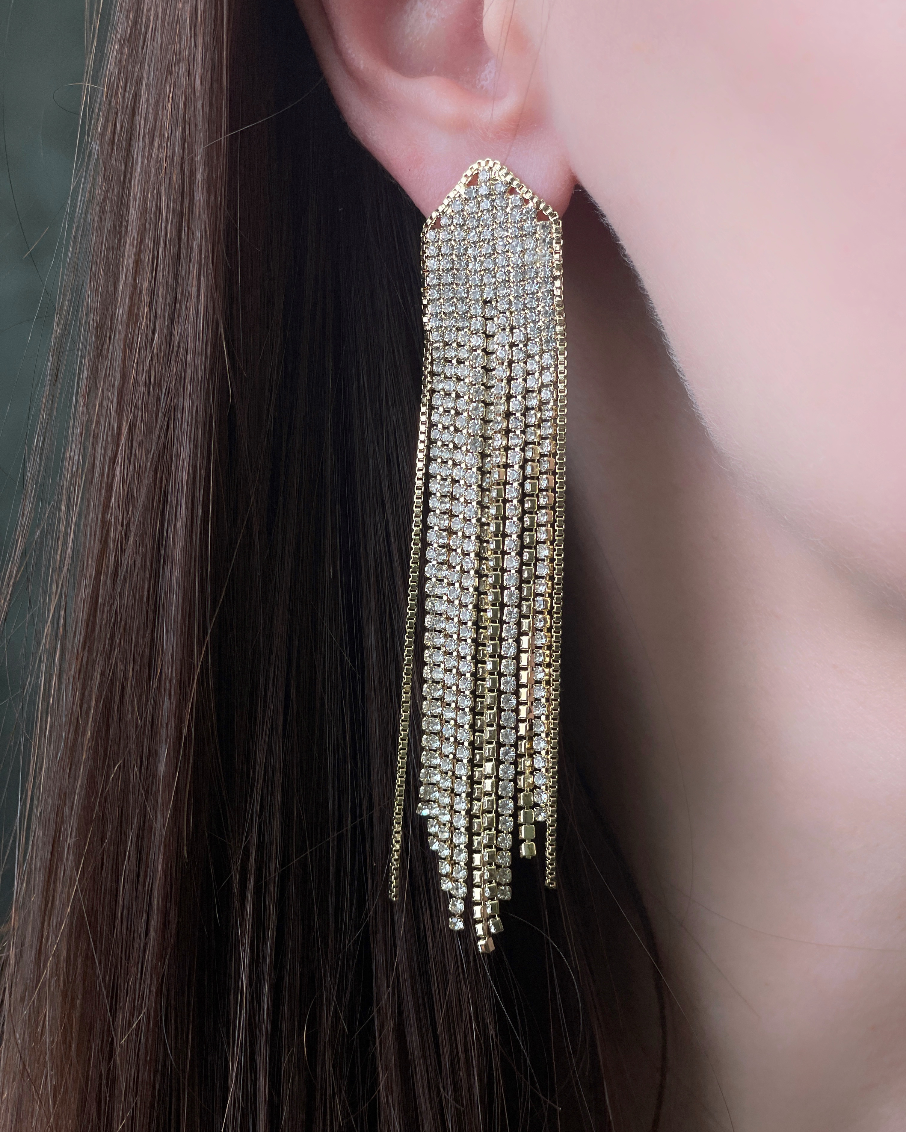 Серьги гвозди цепочками со стразами 72446926\718